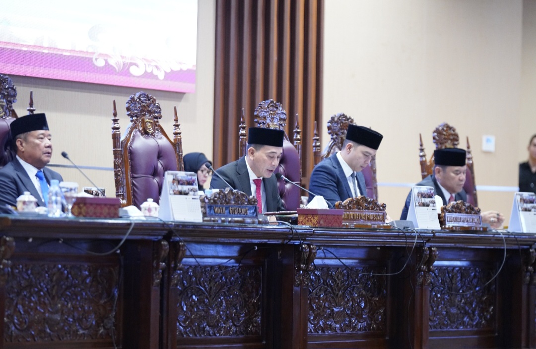 Dalam jawaban Gubernur terhadap Pandangan Umum Fraksi-Fraksi atas Raperda Pertanggungjawaban Pelaksanaan APBD TA 2024 yang dibacakan oleh Wakil Gubernur; H. Cik Ujang, SH, disampaikan diataranya, menjawab pertanyaan :