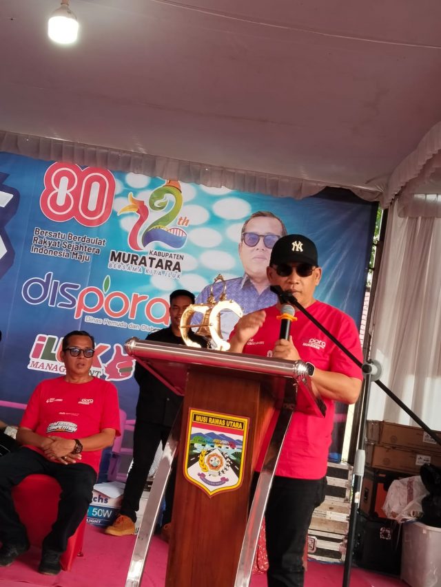 MURATARA, Beritakajang.com – Dalam rangka memeriahkan HUT Kabupaten Muratara Ke-12 dan juga HUT RI yang ke-80 Tahun Pemkab Muratara melalui Dinas Pemuda Dan Olahraga (Dispora) Muratara mengadakan lomba Funboxing Competition Tahun 2025, diikuti perwakilan dari 7 Kecamatan dalam wilayah Kabupaten Muratara dibuka langsung oleh Bupati Kabupaten Musi Rawas (Muratara), H. Devi Suhartoni. Kegiatan ini dilaksanakan di lapangan silampari Kelurahan Muara Rupit, Sabtu (9/8/2025).
