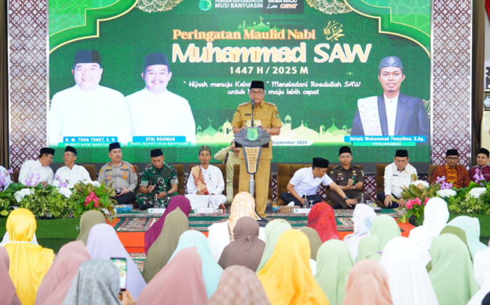 “Atas nama pribadi dan Pemerintah Kabupaten Musi Banyuasin, saya menyambut baik terselenggaranya peringatan ini. Semoga menjadi momentum menumbuhkan semangat meneladani ajaran Rasulullah, sehingga nilai-nilainya dapat kita terapkan dalam kehidupan sehari-hari,” ujarnya.