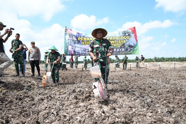 BANYUASIN, Beritakajang.com-Dalam rangka terus mendukung ASTA CITA Presiden Republik Indonesia dalam memperkuat ketahanan pangan di Indonesia, Pemerintah Kabupaten Banyuasin dan Kodam II/Sriwijaya bersama PT. Agrindo Raya terus memaksimalkan serta memanfaatkan lahan untuk meningkatkan produksi padi dengan menanam Padi Gogo di lahan Perkebunan PT. Agrindo Raya Penanaman ini berlangsung di Desa Pematang Palas, Kecamatan Banyuasin I, Kamis (18/09/2025).