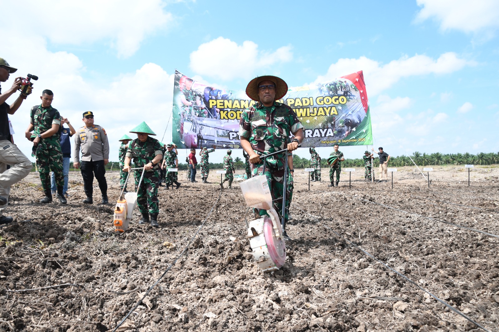 Sementara itu, Pangdam II/Sriwijaya Ujang Darwis menjelaskan Penanaman Padi Gogo ini merupakan pencanangan sebagai upaya peningkatan ketahanan pangan di Kabupaten Banyuasin, Sumatera Selatan. “Kita manfaatkan lahan yang ada dengan musim tanam yang pas dengan harapan hasil pertanian kita bisa meningkat baik padi maupun jagung,” jelasnya.