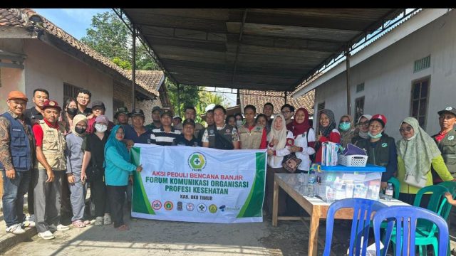 OKU TIMUR, Beritakajang.com – Forum Komunikasi Organisasi Profesi Kesehatan (FKOPK) Kabupaten Ogan Komering Ulu (OKU) Timur menggelar pengobatan gratis dan pelayanan kesehatan terpadu bagi warga terdampak bencana banjir di Desa Melati Jaya, Kecamatan Semendawai Timur, Sabtu (10/1/2026).