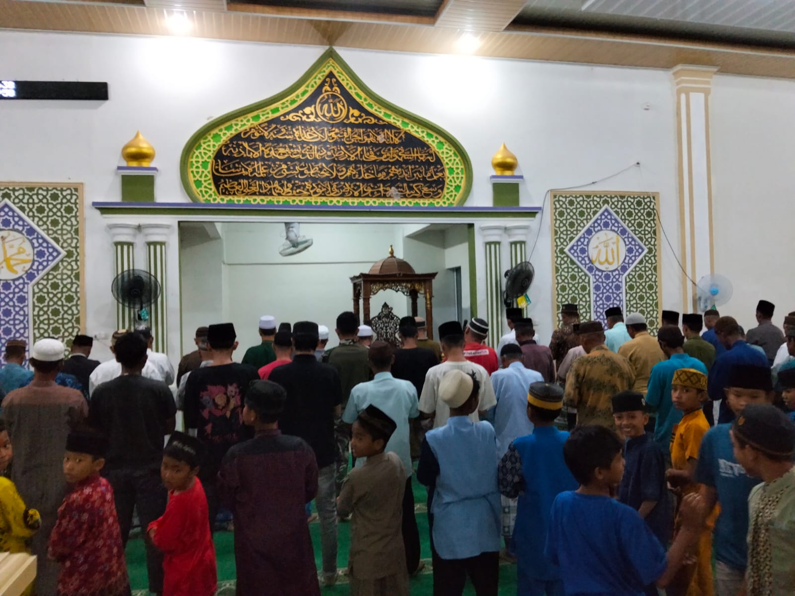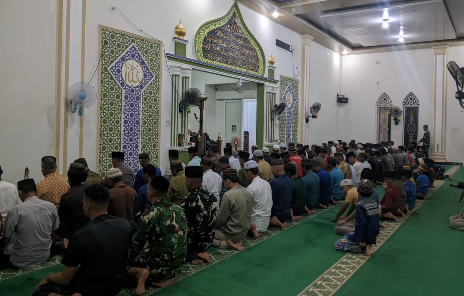 PULAU LEPAR, Beritakajang.com-Satuan Tugas TMMD ke- 127 Kodim 0432/Basel Selama Bulan Suci Romadhan tetap rutin melaksanakan Ibadah Solat berjamaah dengan Warga di lanjutkan Taraweh dan Apel malam.