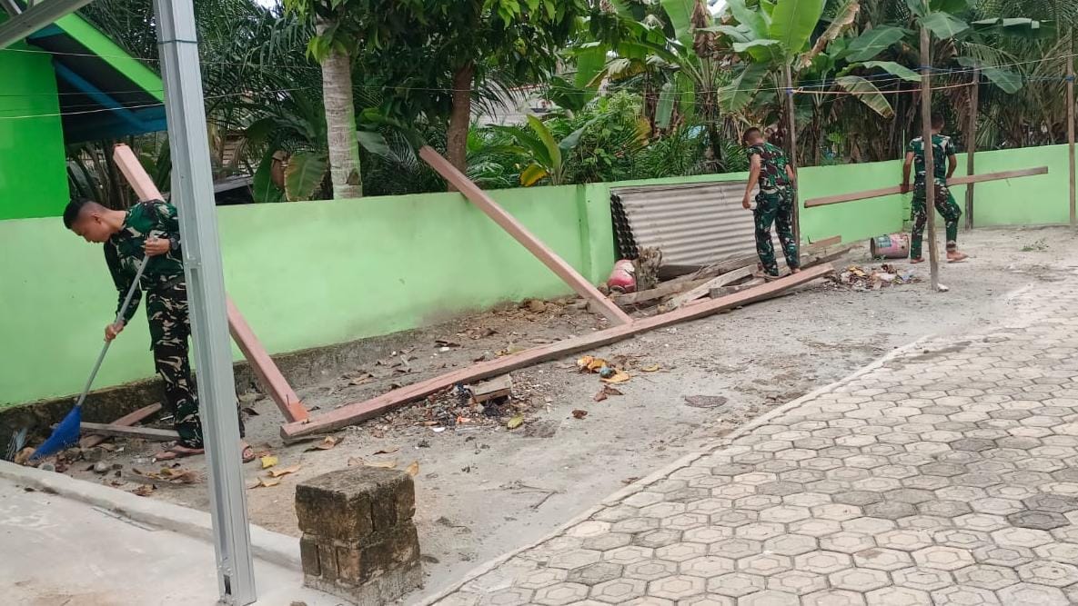 PULAU LEPAR, Beritakajang.com – Personel Satuan Tugas (Satgas) TNI Manunggal Membangun Desa (TMMD) membersihkan fasilitas ibadah Musolah Al Munawar di bulan Suci Romadhon di lokasi sasaran fisik program TMMD. Kegiatan ini bertujuan untuk meningkatkan kenyamanan warga dalam beribadah sekaligus mempererat hubungan antara TNI dan masyarakat.