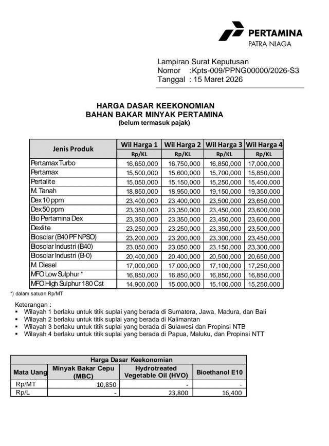 Disebutkan dalam dokumen tersebut, harga yang tercantum sudah memasukkan komponen harga dasar, PPN 11 persen dan Pajak Bahan Bakar Kendaraan Bermotor (PBBKB).