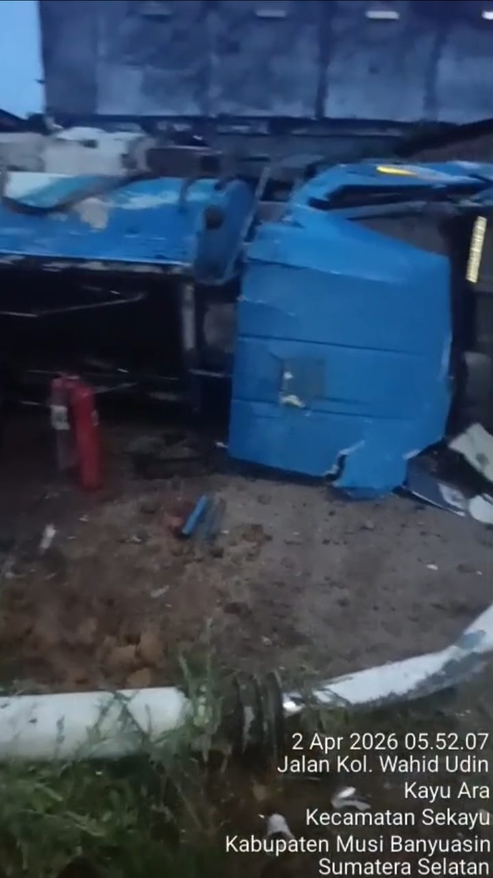 MUSI BANYUASIN, Beritakajang.com – Sebuah mobil tangki pengangkut bahan bakar minyak (BBM) mengalami kecelakaan di kawasan Simpang 4 Kayuare. Peristiwa tersebut sontak menjadi perhatian masyarakat yang berada di lokasi kejadian.