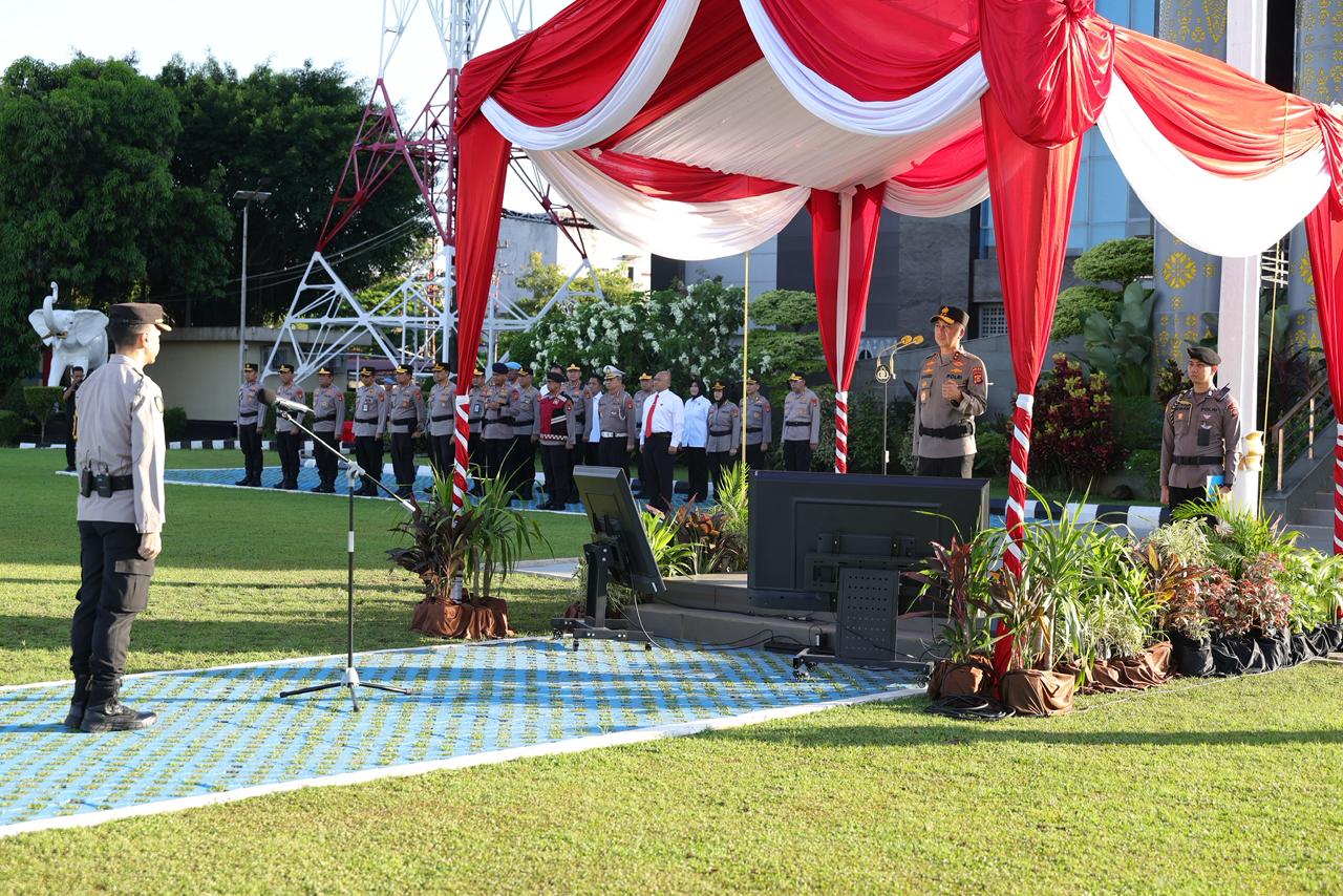 Apel dihadiri Wakapolda Sumatera Selatan Brigjen Pol Rony Samtana, S.I.K., M.T.C.P., Irwasda Polda Sumatera Selatan Kombes Pol Feri Handoko Soenarso, S.H., S.I.K., serta seluruh Pejabat Utama Polda Sumsel dan jajaran. Kegiatan berlangsung khidmat melalui rangkaian upacara, pembacaan keputusan, hingga arahan Kapolda.