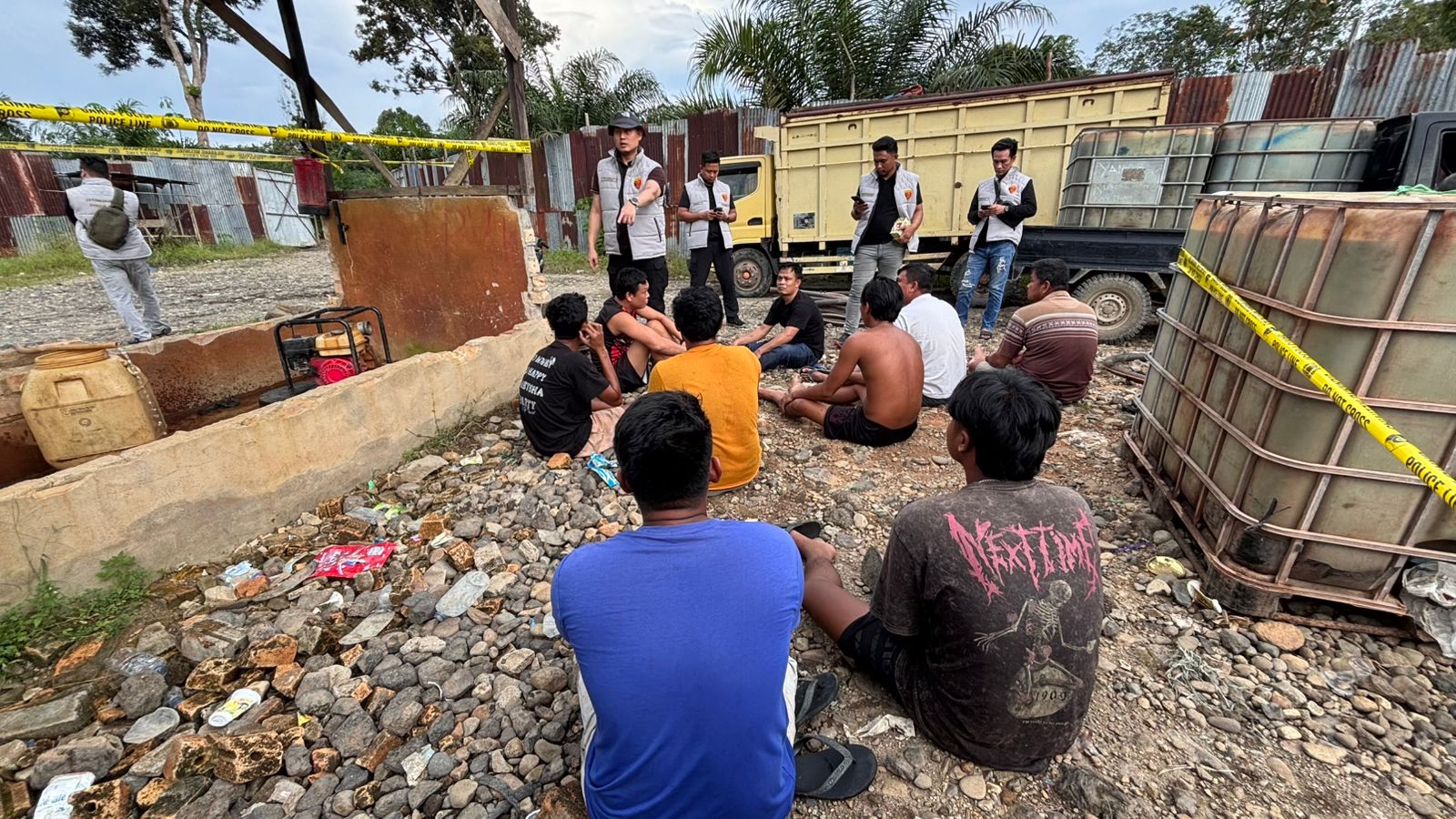 Selain itu, petugas juga menyita sejumlah barang bukti berupa puluhan tedmon penampung, selang, mesin pompa sedot, serta lima unit kendaraan operasional yang digunakan dalam aktivitas ilegal tersebut, termasuk mobil tangki dan kendaraan angkut lainnya.